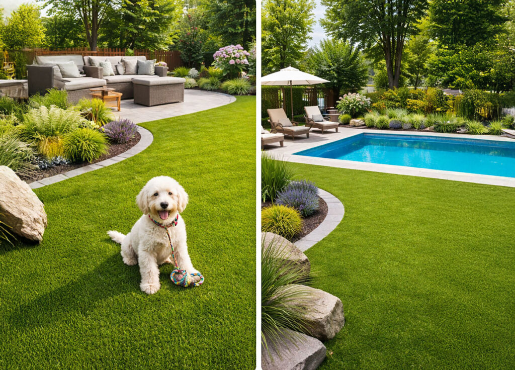 A beautiful lawn doesn’t have to mean constant mowing, watering, and maintenance. Synthetic turf offers a clean, green landscape solution that looks great year-round without the time and expense required to maintain natural grass. It’s an excellent option for homeowners who want a consistently attractive lawn while reducing water use, fertilizers, and ongoing yard work.